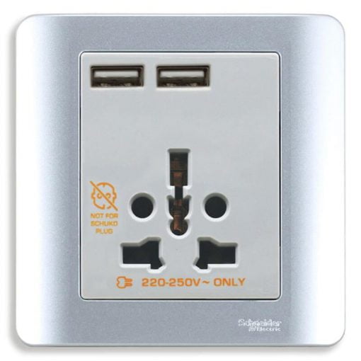Bộ ổ cắm đa năng và sạc USB đôi màu xám Schneider E8442616USB_SA_G19, dòng Zencelo