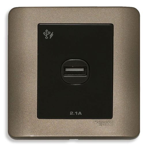 Bộ ổ sạc USB đơn 2.1A màu đồng Schneider E8431USB_SZ_G19, dòng Zencelo